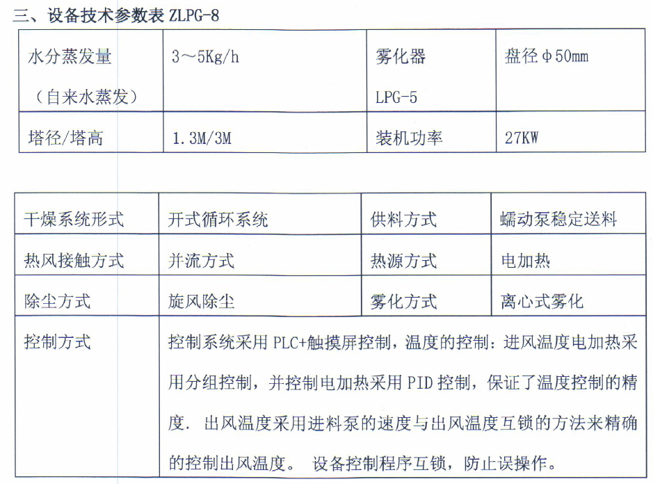 ZLPG系列中药浸膏喷雾干燥机的具体参数及配制,可以查阅我公司网站或来电来函咨询。