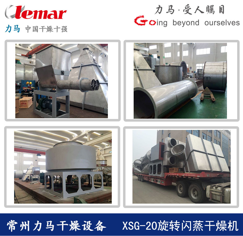 XSG-20旋转闪蒸干燥机是迄今为止我公司承接的^大的闪蒸干燥机,主机直径达到1.8米,^大高度为9.2m,150m²的占地面积,150处理风量40000m³/h,蒸发水份每小时达到1300kg。
