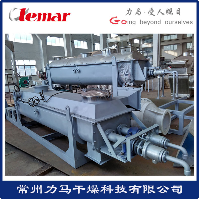 此次客户订购的空心桨叶干燥机主要用于干燥化工污泥,处理量为400-500KG/8H,初始水份为80%左右,经过干燥后^终水份在35%-40%之间,采用的饱和蒸汽作为热源,整机接触物料部分均采用了304不锈钢制作。
