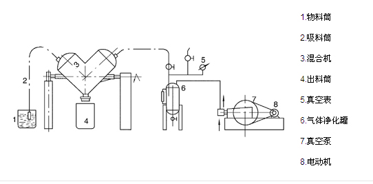 本机用于制药、化工、食品等行业两种以上的干粉状、颗粒状物料的混合。